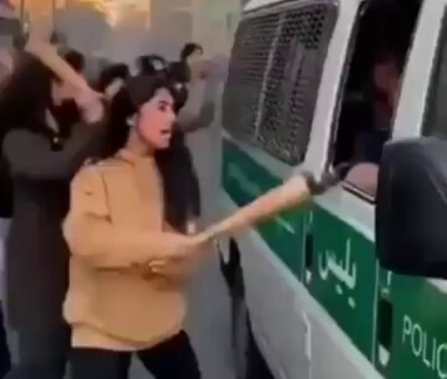 Paylaşılan videoda ise bir kadının bir arabaya sopa ile vurduğu görülüyor. İddiaya göre bu aracın bir polis arabası olduğu ve protestocuların polis araçlarına saldırdığı öne sürülüyor.