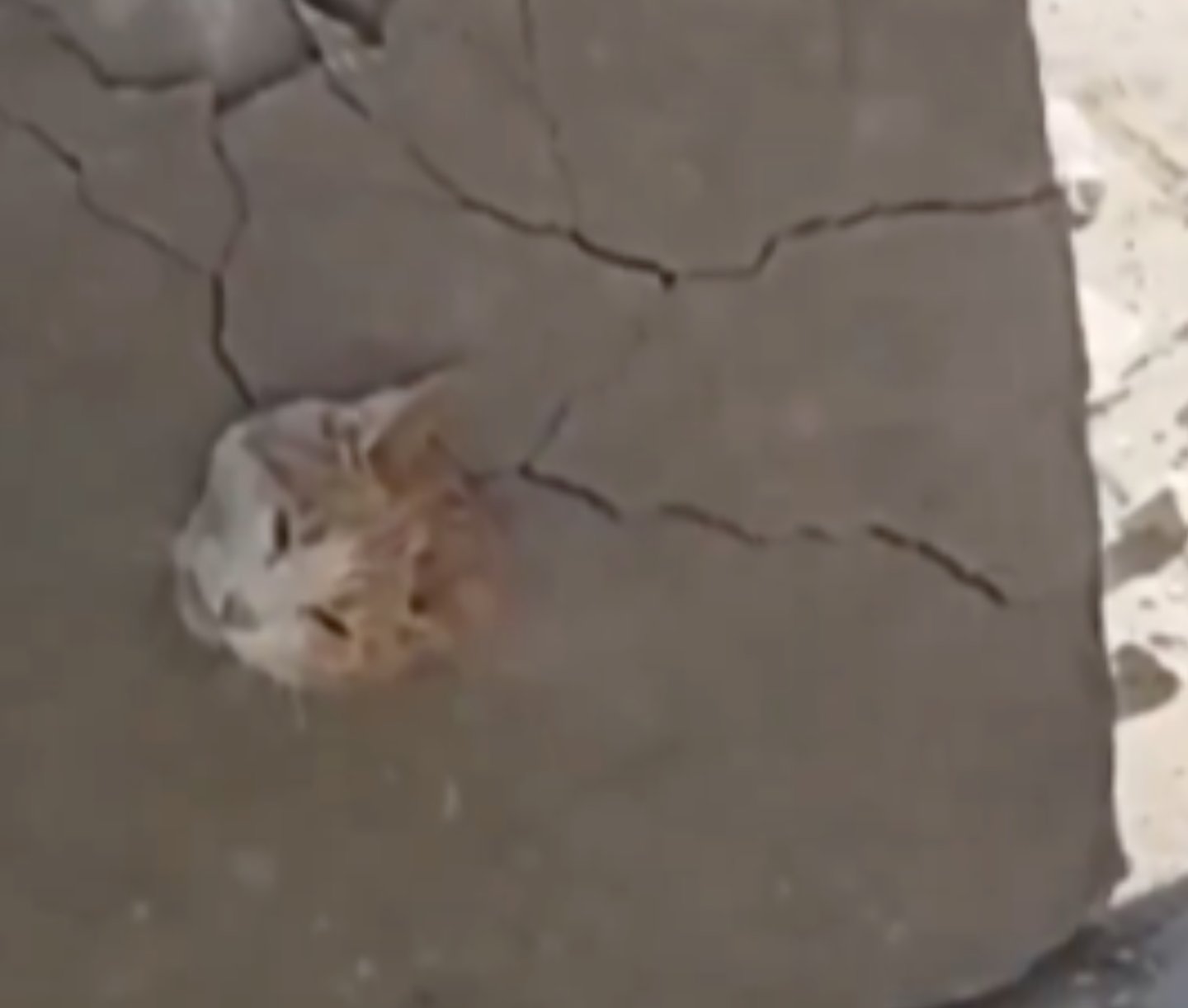 → Video üzerine beton dökülen değil, sıkışan bir kediyi gösteriyor.