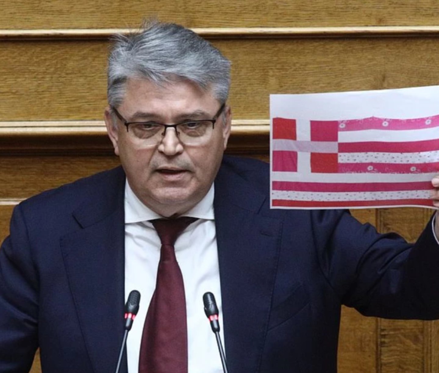 Paylaşımdaki video internette araştırıldığında, görüntülerin 17 Aralık 2023’te Yunanistan Parlamentosu'nda yapılan 2024 bütçe görüşmeleri sırasında olduğu anlaşılıyor. Görüntülerde aşırı-sağ Niki partisinin lideri Dimitris Natsios mecliste bütçe hakkında konuşma yapıyor. Natsios New York’ta Yunanistan Başkonsolosluğundaki sergide Yunan bayrağının çarşaf ve pembe renklerle Georgia Lale yeniden üretildiği sanat eserini eleştirdiği görülüyor. Natsios ayrıca “bayrağımız mavi ve beyazdır ve sadece kahramanlarımızın kanıyla kırmızıya boyanır” diye belirtiyor. Natsios’un konuşması sırasında Yunanistan bayrağının kırmızı-beyaz olması konusunda bir tartışma da geçmiyor.