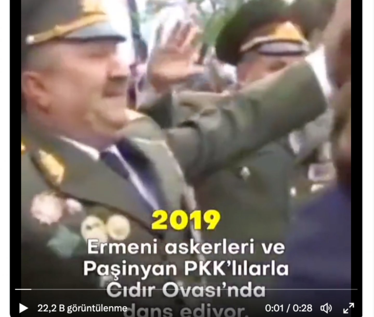 Bir Twitter hesabı tarafından 18 Ocak 2022 tarihinde yapılan paylaşımdaki videonun Ermenistan Başbakanı Nikol Paşinyan’ın PKK’lılar dans ettiğini gösterdiği iddia edildi.