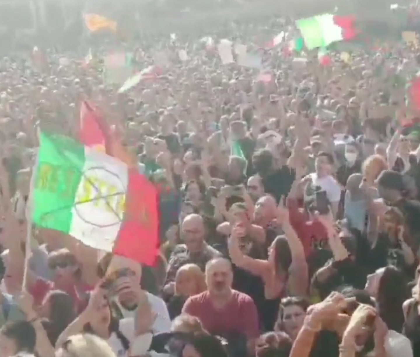 İtalya bayraklı kitlesel bir grubun gösterisi sosyal medyada İtalya Başbakanı Mario Draghi’nin istifasına ilişkin metinlerle 2022 yılının Temmuz ayının başından beri paylaşılıyor. Anahtar kelimelerle yapılan aramalarda söz konusu videonun 8 Temmuz 2022 tarihinde Draghi’nin istifası için yapılan bir gösteri olduğu iddiasıyla da paylaşıldığına rastlanıyor. Videodan alınan ekran görüntüleri arama motorlarında tersten aratıldığında La Pressa – Quotidiano on-line adlı İtalyan bir haber sitesinin Youtube videosuna ulaşılıyor. Video, 9 Ekim 2021 tarihinde Roma – Popolo Meydanı: Green Pass karşıtı protesto başlığıyla yüklenmiş.