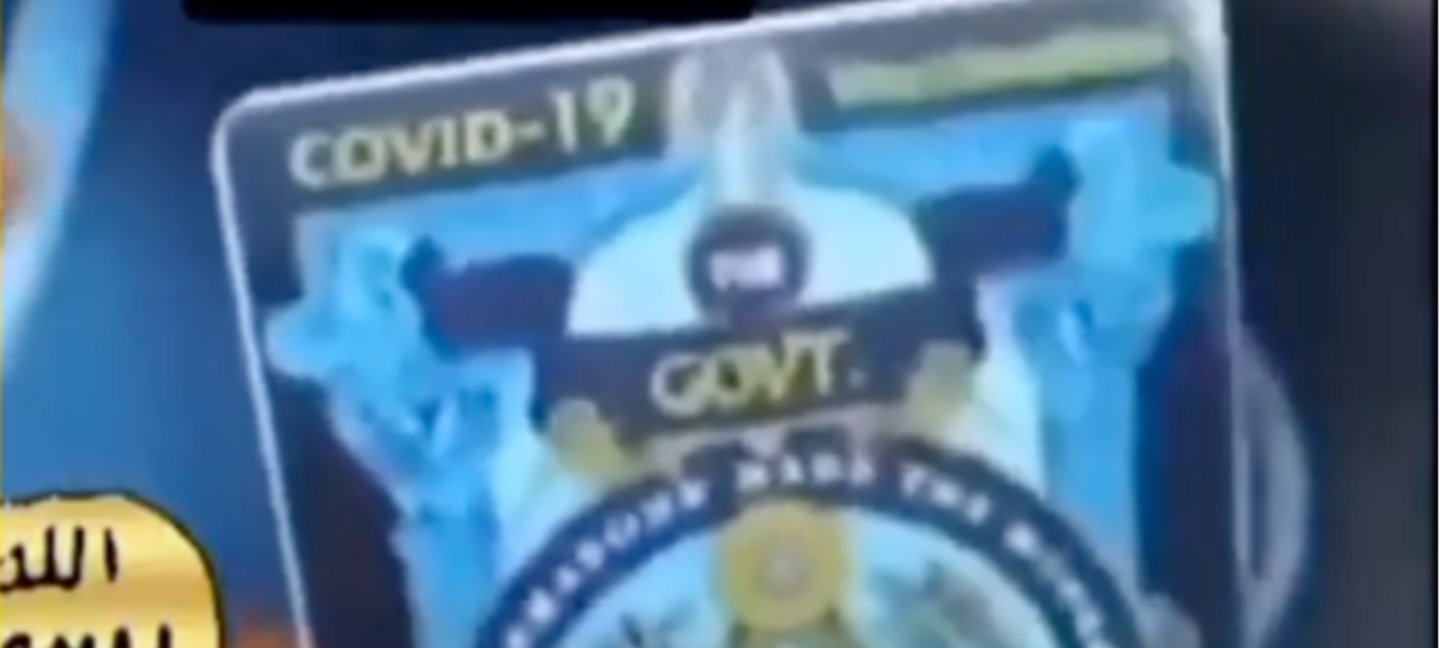 Videodan alınan ekran görüntüleri arama motorlarında tersten aratıldığında kartın arkasındaki görselin İngiliz tarihçi John Dickie’nin “The Craft: How the Freemasons Made the Modern World” adlı kitabının kapağına ait olduğu görülüyor. Kitabın kapağı üzerinde oynamalar yapılmış, “CRAFT” sözcüğü yerine “hükümet” kelimesinin İngilizce karşılığı “government”ın kısaltması “GOVT.” yazılmış. Kapakta yazar John Dickie’nin isminin yazdığı yer ise “BY PFIZER” ibaresiyle değiştirilmiş.