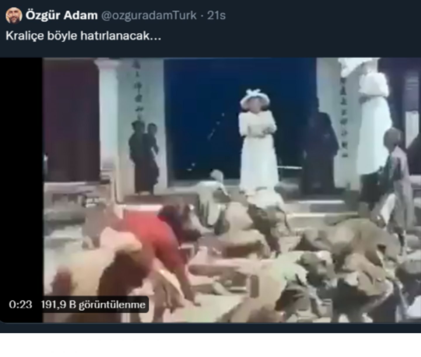 Bir Twitter hesabı tarafından 9 Eylül 2022 tarihinde yapılan bir paylaşımda videodaki görüntünün Birleşik Krallık Kraliçesi II. Elizabeth’in gençlik yıllarına ait olduğu iddia edildi.